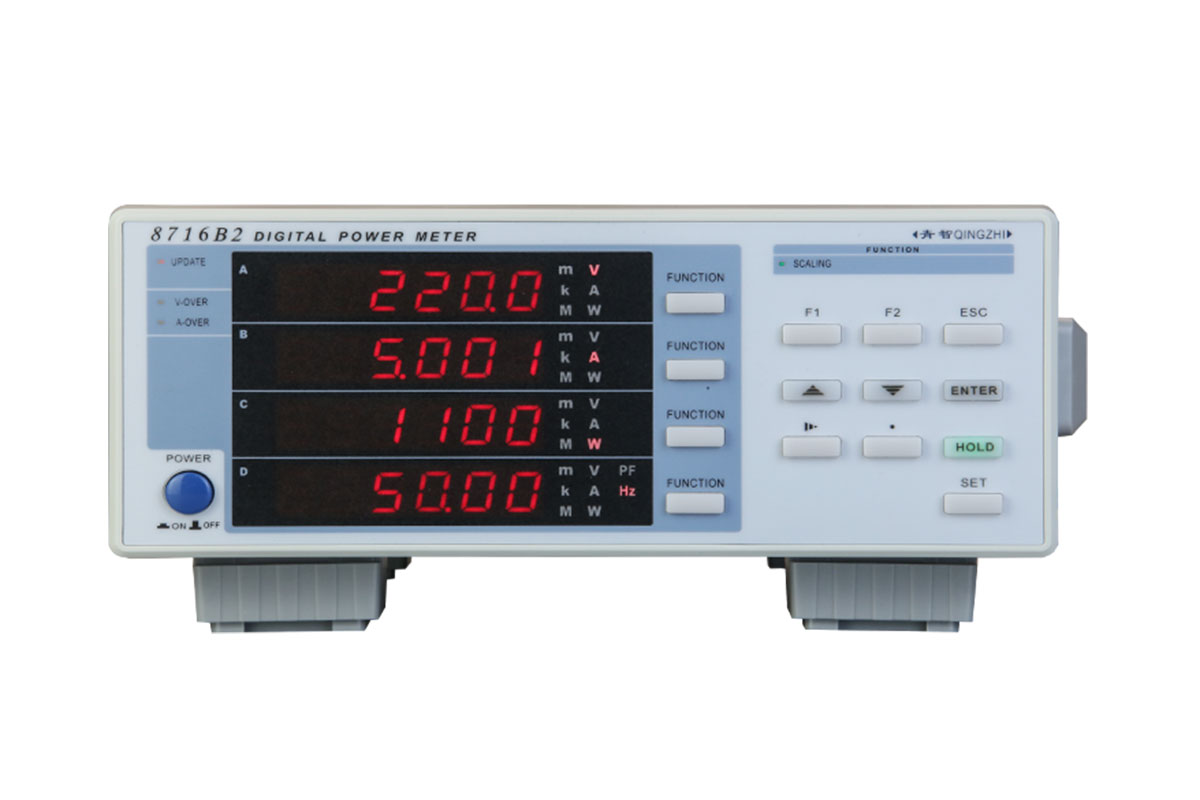 8716B2的設計采用了先進的32位高速處理器和雙路24位AD轉換器,具有高精度、寬動態范圍、結構緊湊靈巧等特點是新一代數字化電參數測量儀器,可以測量有效值電壓、電流、有功功率、功率因數、頻率。